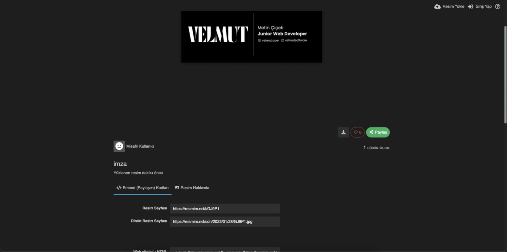 Upload your image to resimim.net as shown in the example, and copy the link directly from the image page.